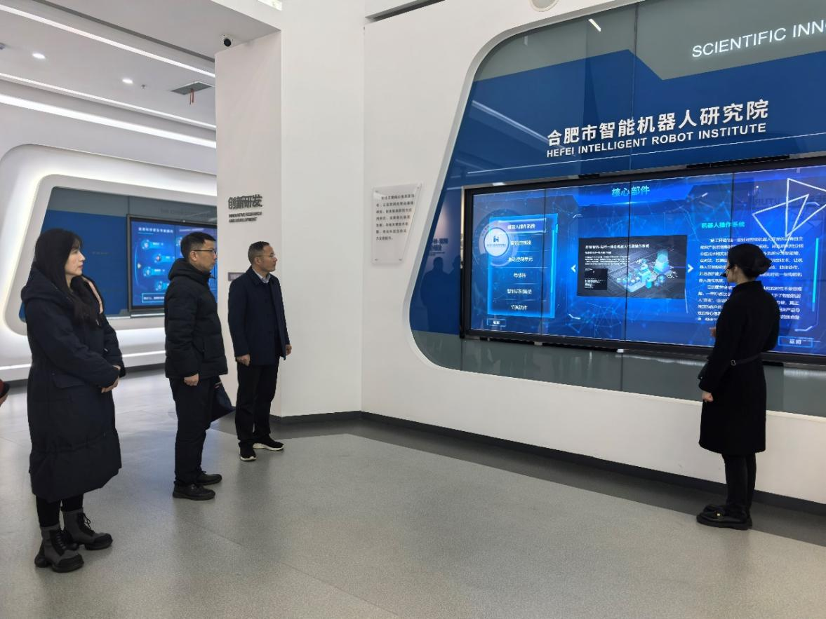 合肥市智能机器人研究院院长于振中向伟德国际victor1946一行人介绍了研究院的发展历程,着重阐述了企业孵化方面的重要进展,以及人工智能在工业生产、医疗康养和生活服务等领域中的应用,展现了智能机器人技术在提升行业效率和安全性方面的巨大潜力。